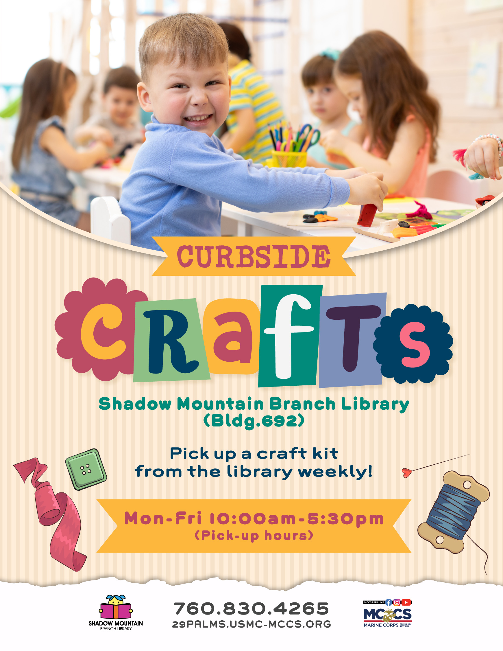 Pick up a FREE family-friendly craft kit each month from Shadow Mountain Branch Library, Monday - Friday, 10:00am - 5:30pm and Saturday - Sunday, 10:00am - 4:00pm.