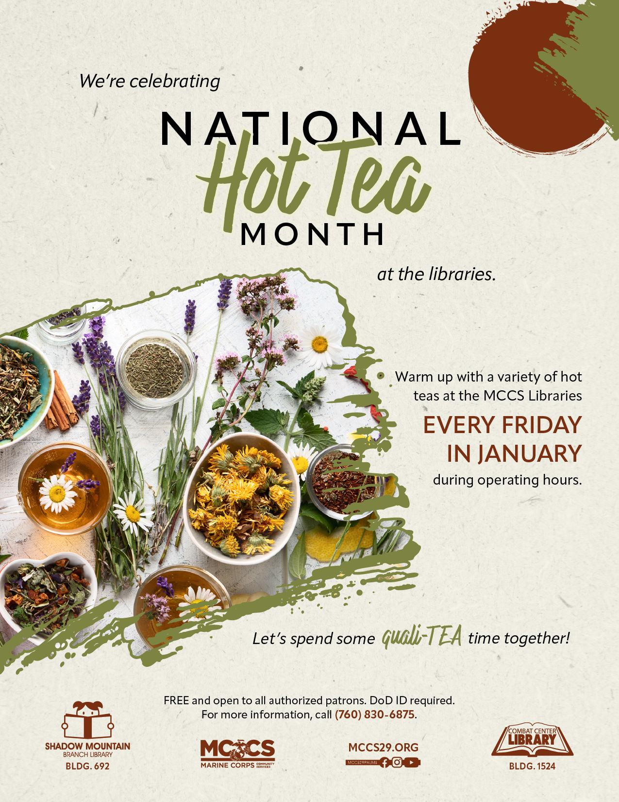 Warm up with a variety of hot tea at the MCCS Libraries every Friday in January.
