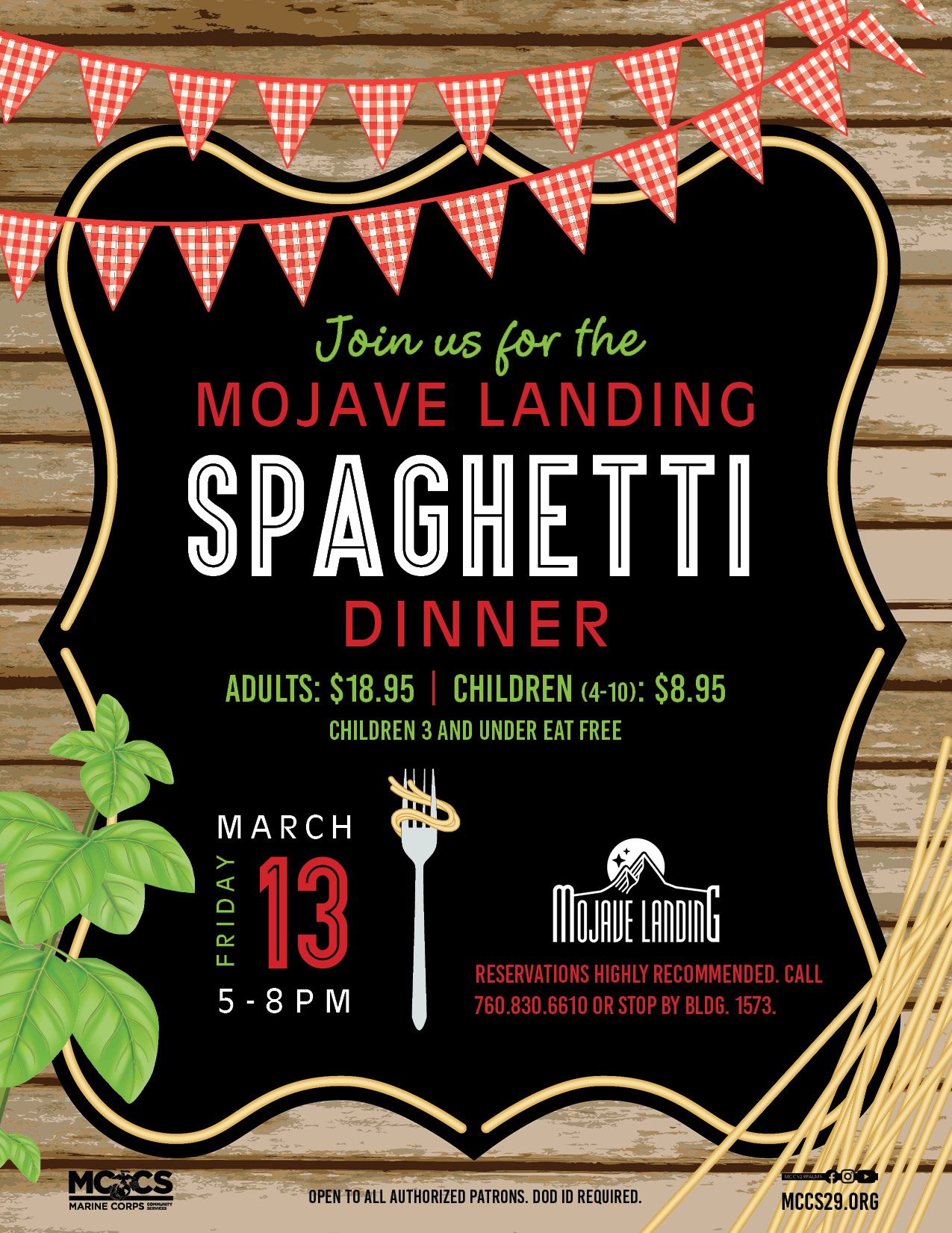 Phone: (760) 830-6610Join us for the Mojave Landing Spaghetti Dinner!