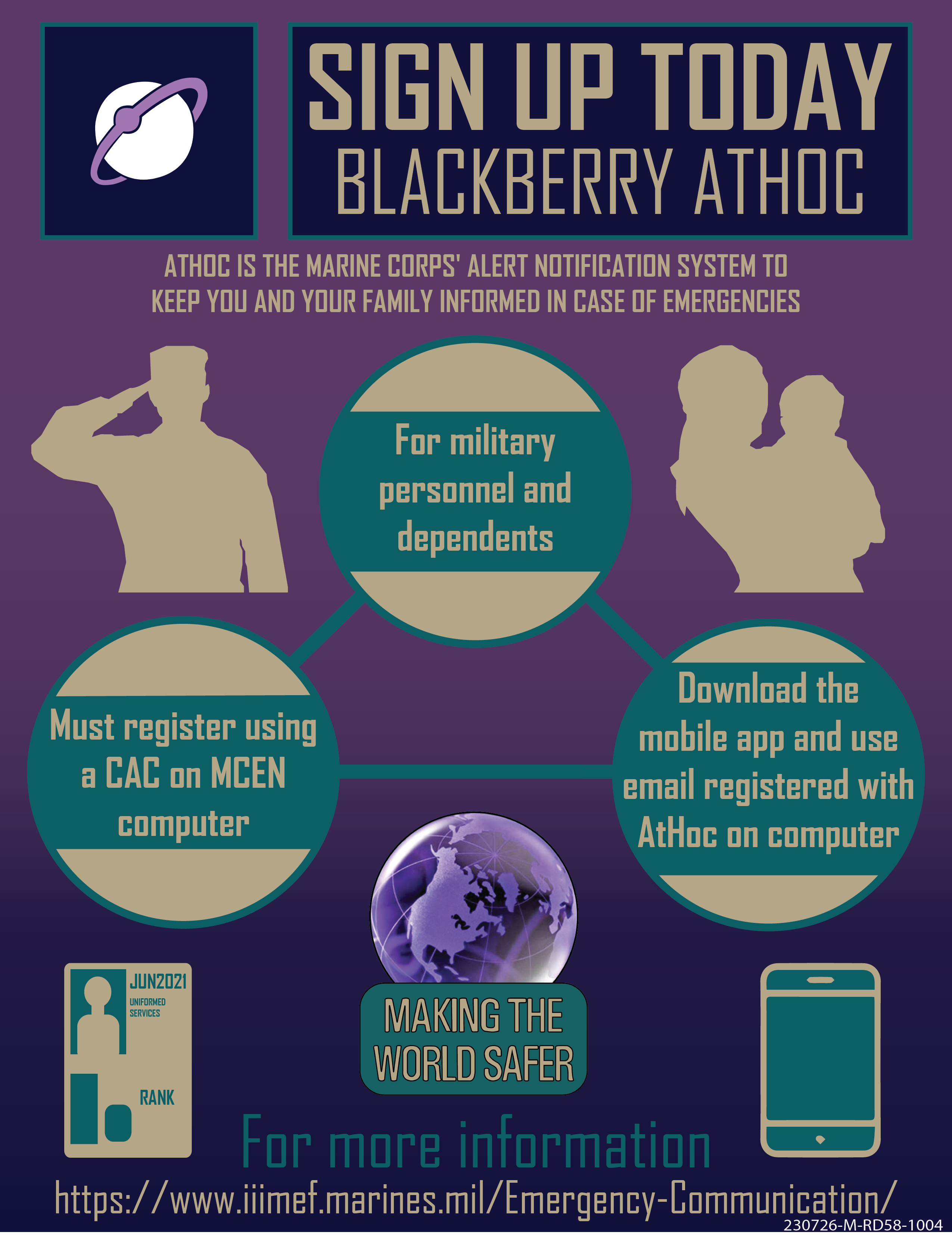 - BlackBerry AtHoc - The Marine Corps' Alert Notification system to keep you and your family informed in case of emergencies.